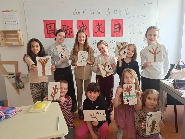 城堡山小学(Elementary School Tvrdjava)举行“春日来信”国画体验活动。在老师的指导下,孩子们拿起毛笔,画出自己心里的春天,书写工整的汉字,制作成明信片,倾注着孩子们对国画艺术的热爱与对中文意境的独特理解。