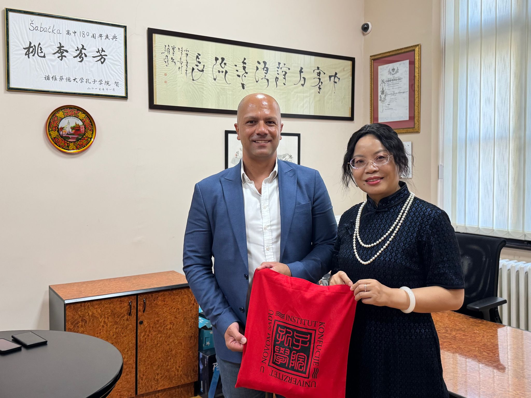 当地时间9月15日,诺维萨德大学孔子学院中方院长陈秀一行访问沙巴茨高中(Šabac High School),与新任校长内纳德·普拉维奇(Nenad Plavic)及负责教师进行交流,共同商讨新学期汉语课程开设及文化活动计划。