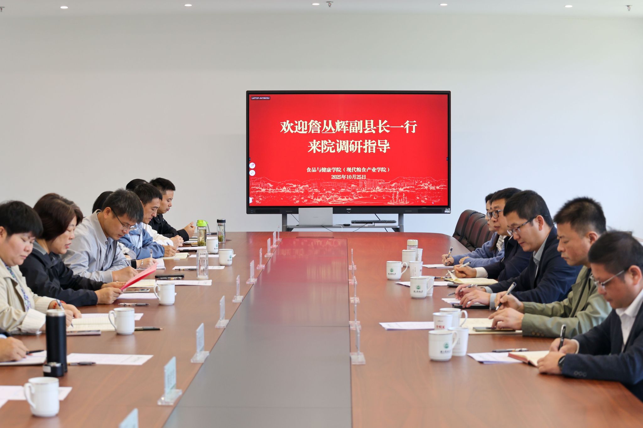 10月25日,东至县县委常委、党务副县长詹丛辉一行来食健学院调研交流,围绕校地合作、产业赋能展开座谈交流。学院院长闵伟红、党委书记朱军、食品功能化创新团队负责人及核心科研团队成员参加会议。