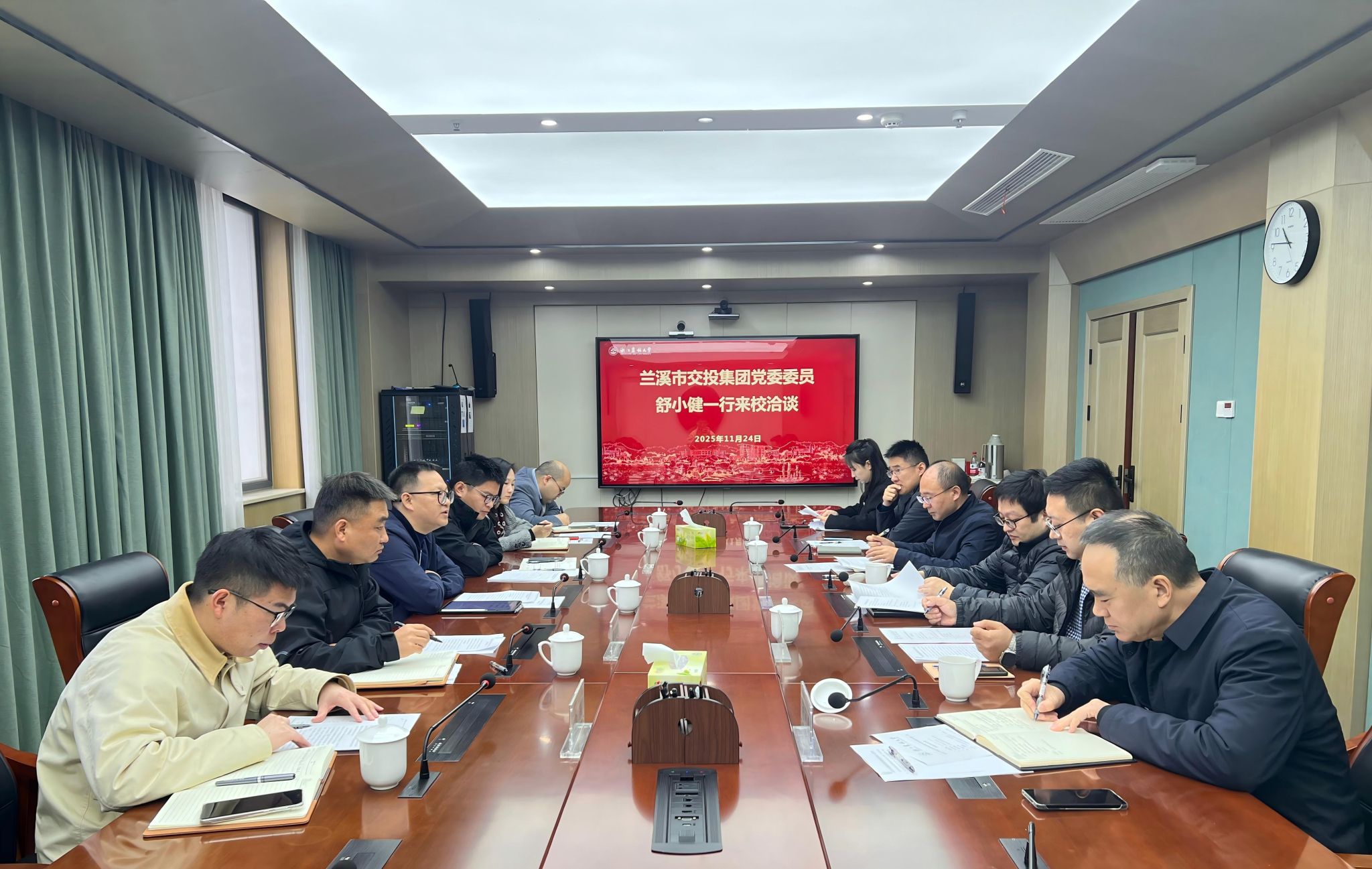 11月24日,兰溪市交投集团党委委员舒小健一行来校洽谈交流。兰溪市交投集团、人才发展集团有限公司、农业发展有限公司负责人,校研究生院、科技处、社会合作处、动科院相关负责人及茶学院相关专业教师参加了座谈交流。