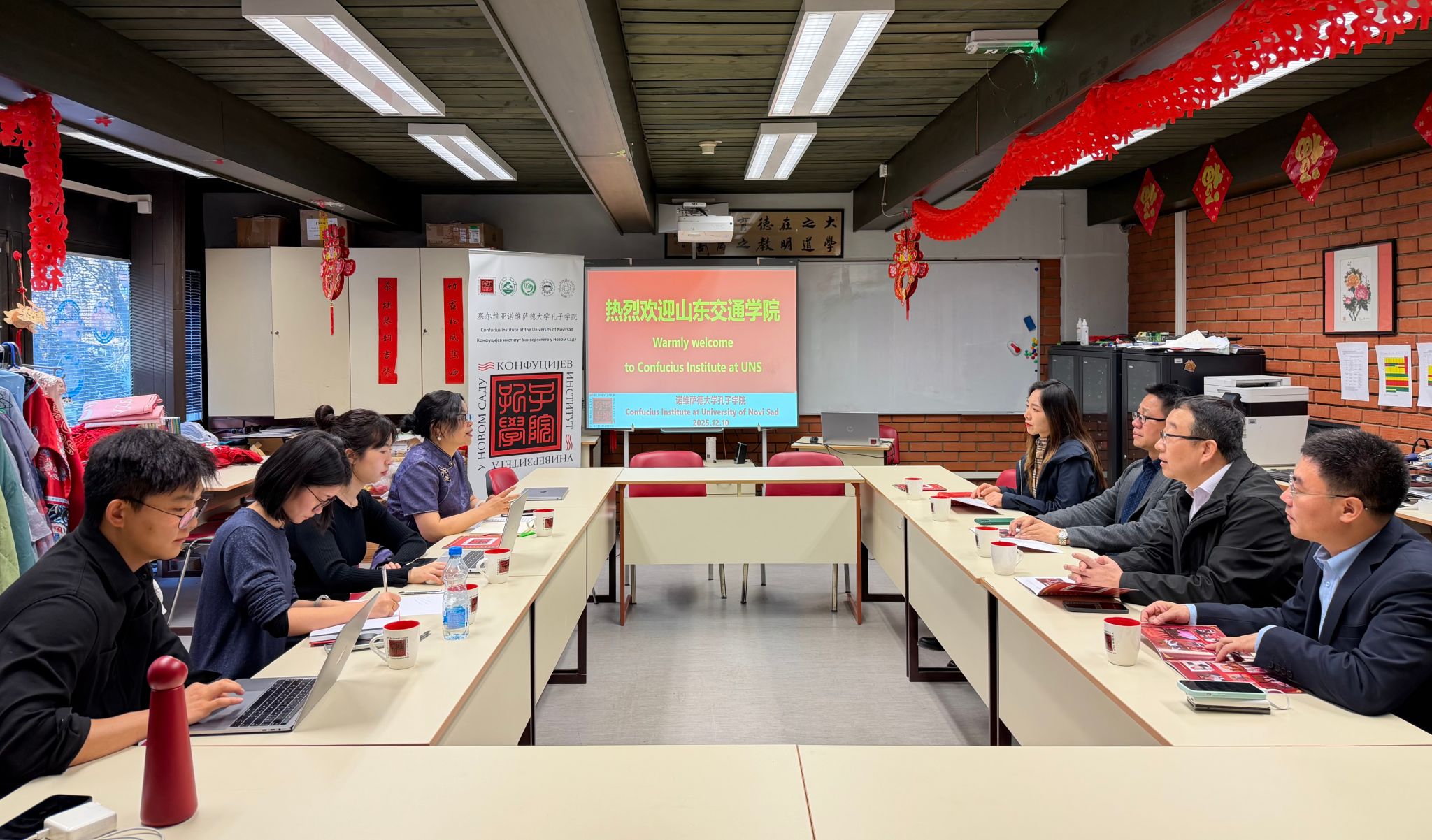 当地时间12月10日,山东交通学院代表团访问诺维萨德大学孔子学院。诺大孔院中方院长陈秀及孔院教师代表参加座谈交流。