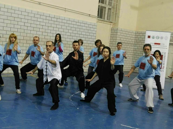 参与此次活动的有30多位来自孔子学院和 “老虎”太极俱乐部的学员,其中很多中老年太极爱好者,学习太极已有4-5年的时间。对年轻的武术爱好者来说,太极不仅仅是强身健体,他们渴望发觉太极“以弱制强,以柔制刚”的奥秘。有一位年轻的学员Vladimir Trajkovic告诉志愿者老师:“我喜欢所有的中国武术,但我最喜欢太极。我觉得太极是一门艺术。我现在在学习中文,因为我觉得这能帮助我更好地学习武术,了解太极拳。”