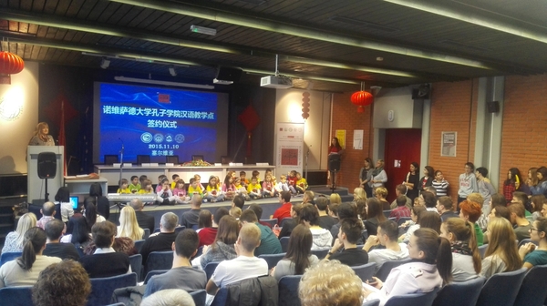 诺大孔院中外方院长与八个汉语教学点的校长分别在协议上签字,伏伊伏丁那省科技厅副厅长、诺维萨德大学副校长与部分师生、市民共约200人见证了这一时刻。