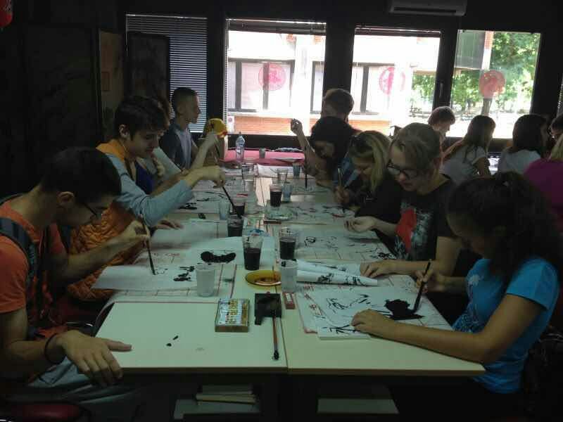 中国书法和国画课受到了学生们的热切追捧,笔墨纸砚对学习汉语的学生有着特殊的魅力和亲切感。学生们在课堂上不仅熟练掌握了用毛笔书写下自己的中文姓名,还学会了将塞尔维亚国家标志性动物鹰,用中国国画的方式跃然纸上,生动而意义深刻。