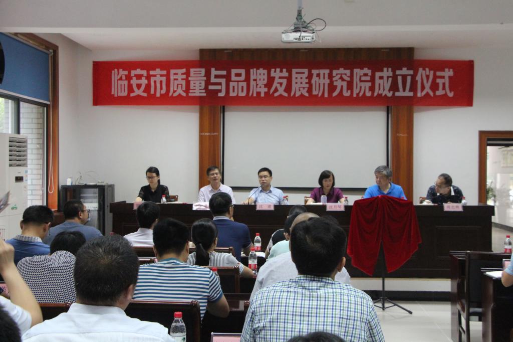 沈月琴与沈建共同为临安市质量与品牌发展研究院揭牌,标志着临安市质量与品牌发展研究院正式成立。