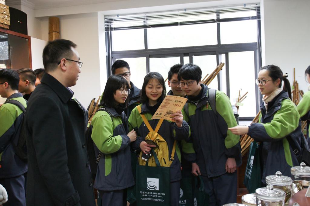 烟雨蒙蒙之中,在工程学院老师、学生党员志愿者的引导下,德清一中师生分两组参观了校史馆、国家工程中心、张院士珍贵木材标本库、森林文化馆、园林设计展厅和动物医院等。一路参观走来,大家紧随讲解员的步伐,认真观看各点展示,面对一件件精美的各式标本、一台台精密的科研仪器、一项项创新的科研成果、一组组精致的设计作品……同学们时而倾听讲解、时而低声交流、时而拍照留念,眼里满是新奇与兴奋。