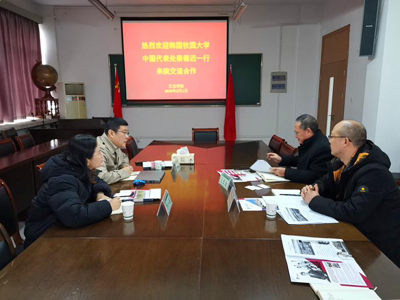 3月1日,韩国牧园大学中国代表处秦德迟一行来访Beat365。文法学院院长王长金接待了来宾,并开展座谈。