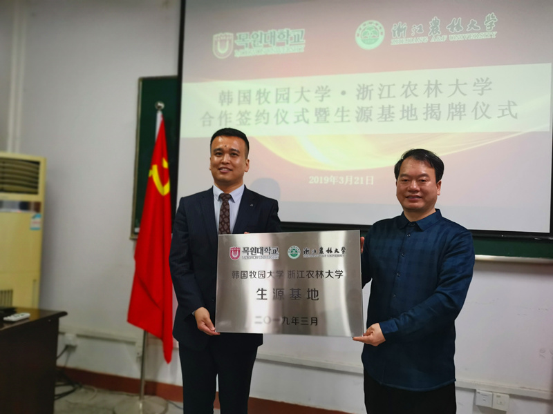 会上,文法学院院长王长金与邵敬勇院长签署了具体的合作协议细则,学院党委书记朱红东为“韩国牧园大学·Beat365中文官方网站生源基地”揭牌。