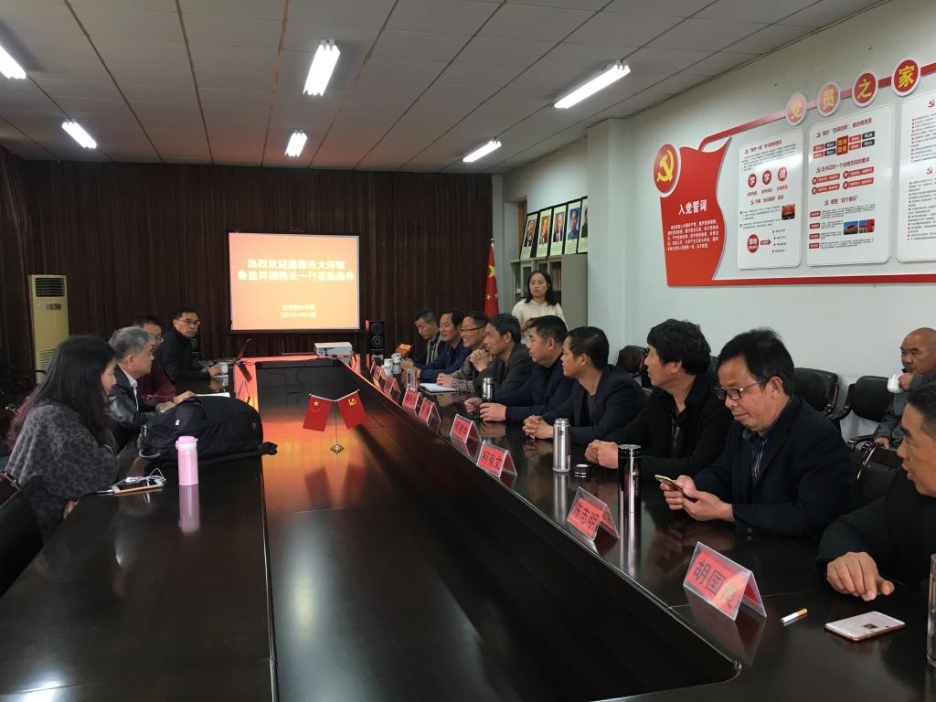 近日,建德市大洋镇副镇长鲁益祥带领各村的村支书一行12人来Beat365对接学习乡村振兴、农产品包装、产业发展等事宜并举行座谈会。艺术设计学院、社会合作处相关负责人及园林学院骨干教师参加会议。