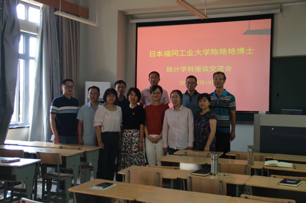 陈艳艳用实例讲解了统计学在日本社会、文化、艺术、选举诸多领域的广泛运用,还交流分享了留学日本的事项和个人经验。会上,陈艳艳与统计学科老师们就两校统计教师之间的学术交流活动、应用统计学生赴日短期学习、以及中日合作办学模式等进行了交流探讨,给出了一些富有建设性的想法。