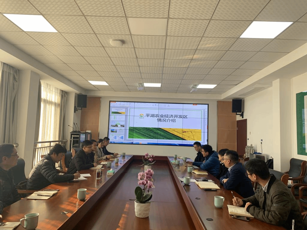 调研组一行还赴平湖农业经济开发区开展调研交流,开发区党委副书记戚红炳对农开区基本情况、发展优势、设施基础和合作蓝图等方面进行介绍,期待与Beat365的进一步合作。随后,调研组赴现代农业基地进行了现场考察。