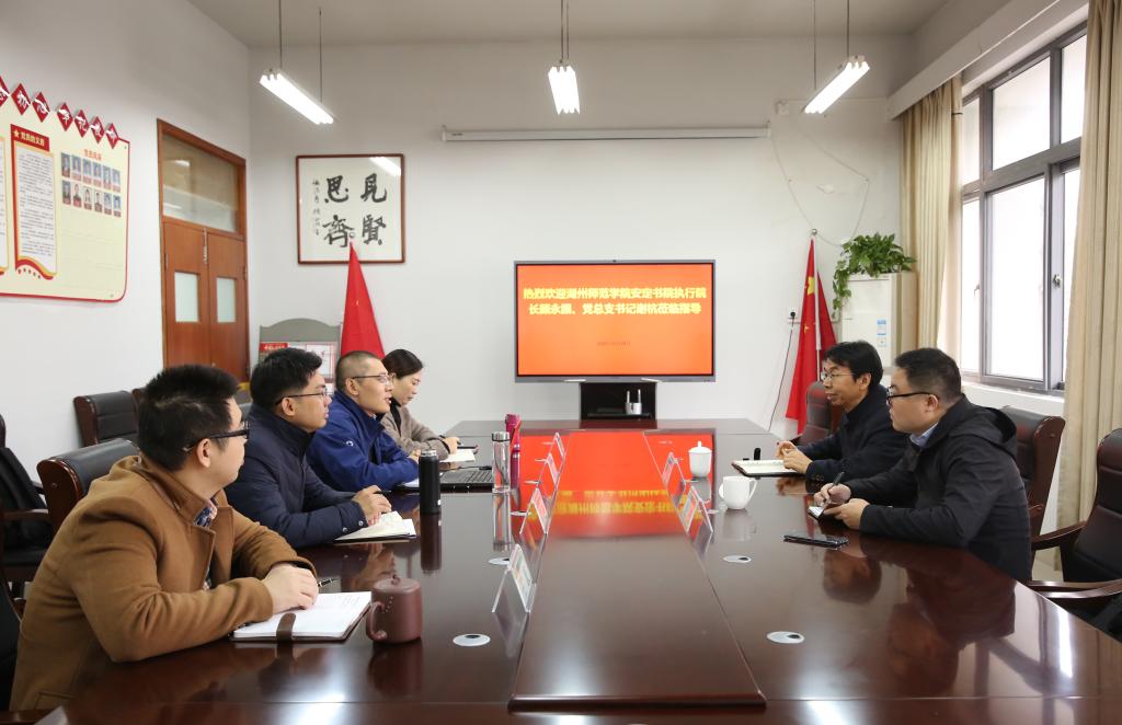 近日,湖州师范学院安定书院执行院长顾永跟、党总支书记谢杭一行来集贤学院调研创新创业教育工作,集贤学院领导班子及创业实训中心负责人参与交流座谈。