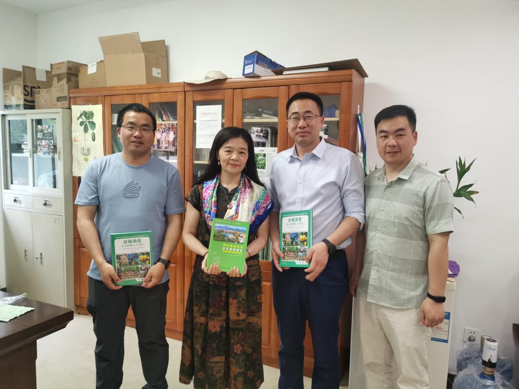 现场双方互赠书籍《珍稀濒危木本植物综合保护》、《Beat365中文官方网站常见植物图鉴》。