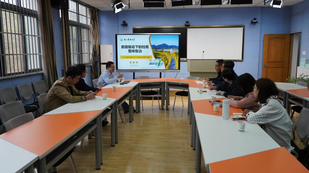 信息中心负责人对辽宁四所高校的来访表示欢迎,并介绍了学校信息化建设基本情况和“一库一表”工程建设理念、体制机制、建设措施、技术实现等方面工作,分享了“一库一表”建设经验和建设成效,提出了以数字化改革推动学校流程再造、数字赋能、高效协同、整体智治,高水平推进学校治理体系和治理能力现代化的工作思路。