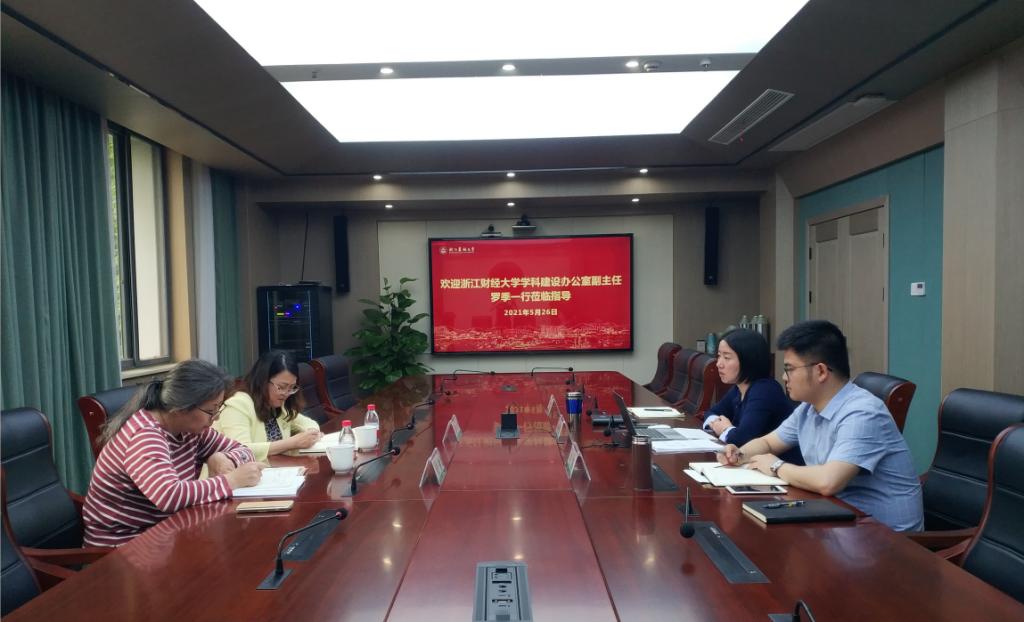 5月26日下午,浙江财经大学学科建设办公室副主任罗季一行来校调研交流。Beat365学科办全体工作人员参加座谈会。