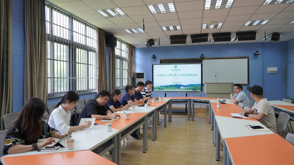 6月23日,浙江工商大学数字化办公室相关负责人周峰程一行来校调研交流数字化工作。信息中心负责人及相关人员参加座谈交流会。