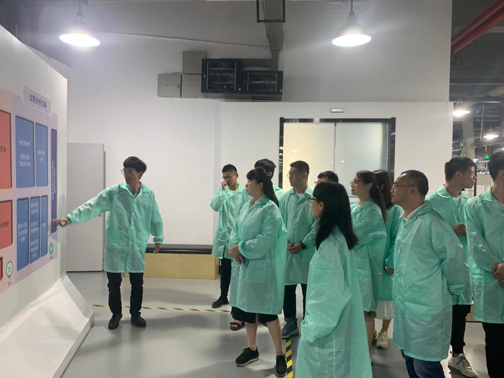 签约仪式后,在人力资源部经理韦东范和支部书记李锐的带领下,参加签约仪式的我方代表参观了谱育科技有限公司生产车间和党建文化长廊。
