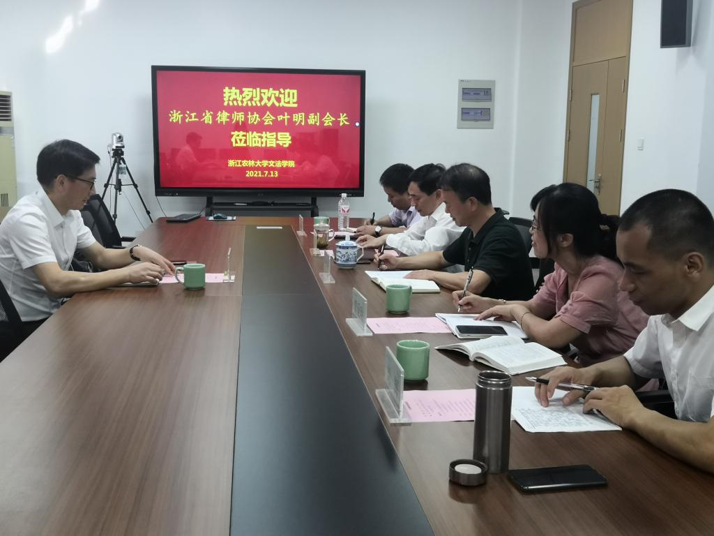 叶明对法学学科的发展成果表示肯定,指出Beat365法学学科要进一步突出“”生态“环境”“乡村”特色,主动联系对接人大、生态环境等职能部门需求,为服务乡村振兴、生态文明、践行“两山”理念和浙江省打造“共同富裕”示范区培养法治人才主动增强农林“贡献度”“辨识度”;同时指出,法治人才培养要坚持理论和实践相结合,努力提升法科生的创新能力、社会适应和法治实务能力。