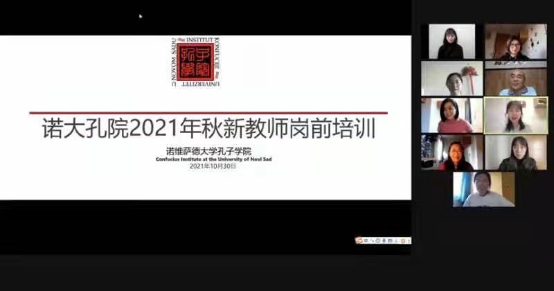 10月30日,诺维萨德大学孔子学院召开了2021年秋新到岗教师履职培训会,开启为期一周的思想、安全、生活适应、业务知识及跨文化交际等培训,会议由孔子学院中方院长陈晦主持,全体在岗汉语教师志愿者参加。