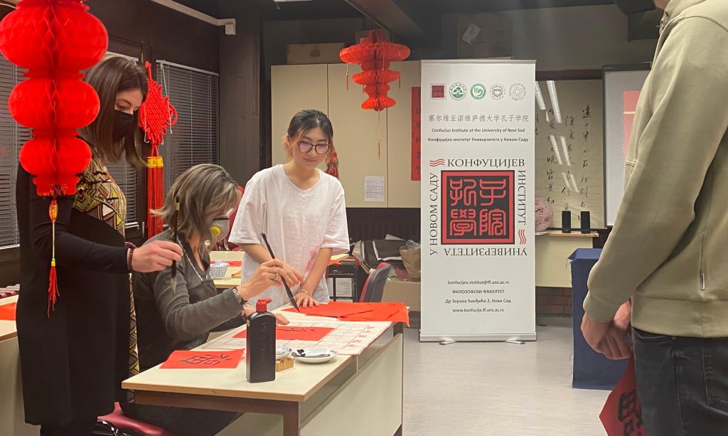 新学期伊始,正值中国传统的元宵节,诺维萨德大学孔子学院面向当地学生及家长举办了一场别开生面的线下“茶·书法”体验课,获得参与者的一致好评。